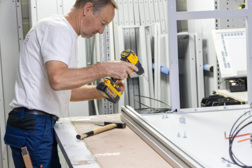Notre équipe de montage installe votre nouveau système de poste de travail de manière professionnelle directement sur site. Après l’installation, nous formons votre équipe de façon complète à l’utilisation et aux avantages ergonomiques. Nous garantissons ainsi que vous et vos collaborateurs bénéficiez durablement de votre nouveau poste de travail et exploitiez pleinement le potentiel de votre système pour des processus plus rapides et une rentabilité accrue.