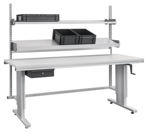 Nos tables d'emballage s'adaptent de manière flexible aux besoins individuels des employés. Grâce à une vis de serrage, une manivelle ou un moteur électrique, chaque poste de travail est adapté sur mesure aux besoins personnalisés. Les magasins à boîtes pliantes et les surfaces de rangement peuvent être réglés selon une grille de 30:30 mm. Il est prouvé que les optimisations ergonomiques permettent de prévenir les absences pour cause de maladie et d'augmenter la productivité de votre entreprise.